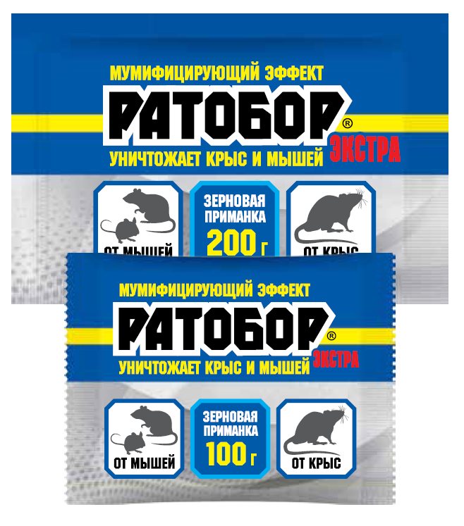 Ратобор-гранулы, предназначены для борьбы с серыми и черными крысами, домовыми и полевыми мышами, водяными крысами. Препаративная форма (твердые гранулы) в отличие от большинства аналогов характеризуется повышенной устойчивостью к размыканию, гранулы не ломаются, не крошатся, длительное время сохраняют привлекательность для грызунов и родентицидные свойства.