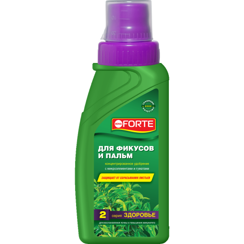 Серия ЗДОРОВЬЕ создана лабораториями Bona Forte для восстановления истощенной почвы и повышения иммунитета растений. Подходит для фикуса бенгальского, Бенджамина, биннендика, карики (инжира), каучуконосного, крохотного, лировидного, а также различных пальм- брахея, бутия, вашингтония, гиофорба, кариота, ливистона, финиковая, ховея, хамедорея, хризалидокарпус. Здоровье – первый и основной шаг к красоте декоративных растений. Удобрение содержит полный комплекс веществ, необходимых для полноценного и сбалансированного питания растений: