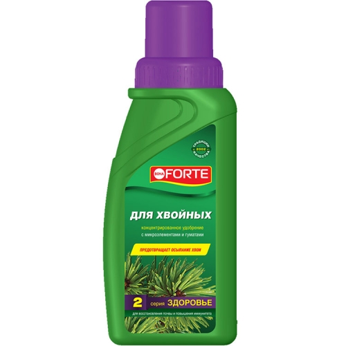 Это наиболее подходящее удобрение для хвойных растений. Содержание в подкормке питательных элементов – микроэлементов, гуматов и макроэлементов – находится в оптимальном для хвойных пород соотношении.